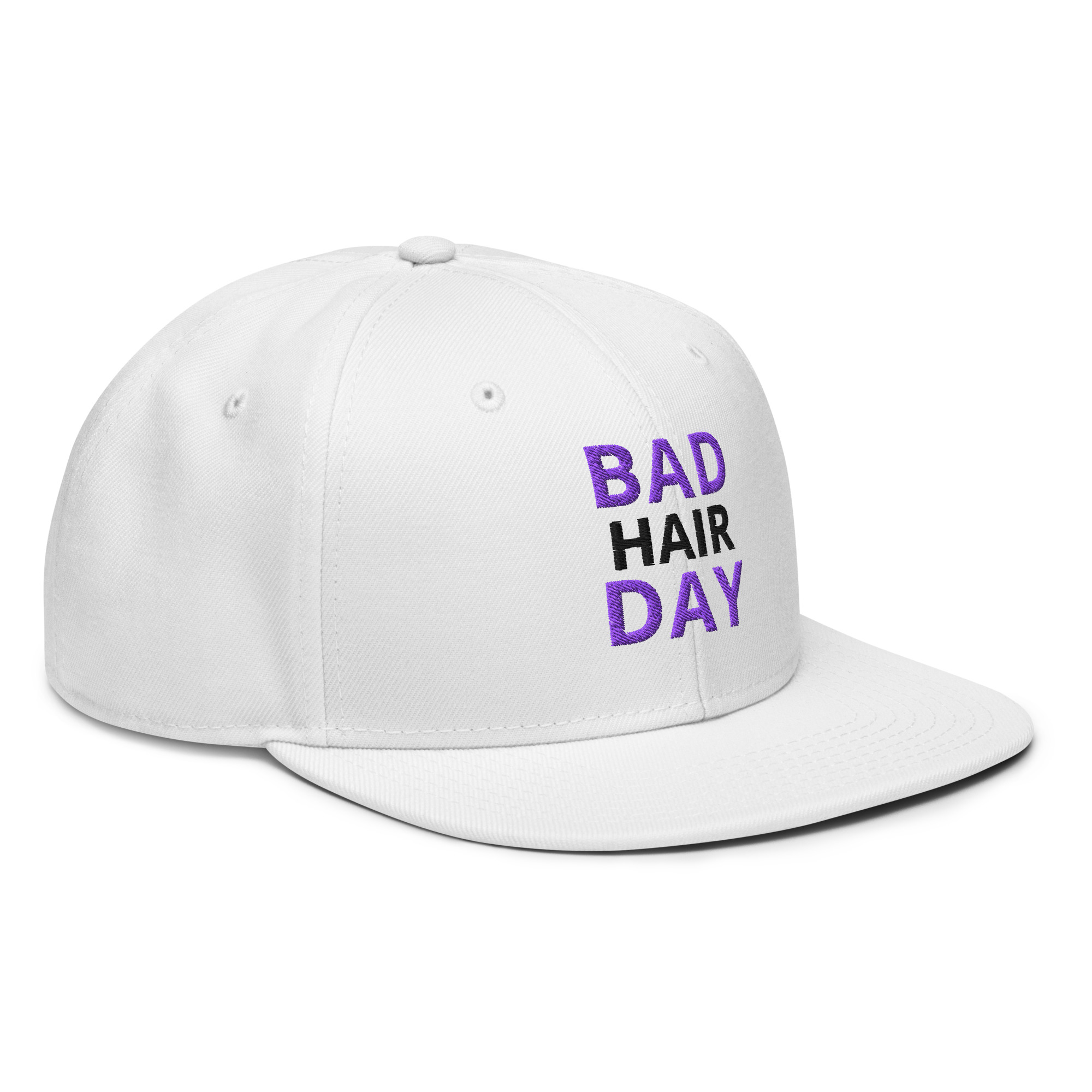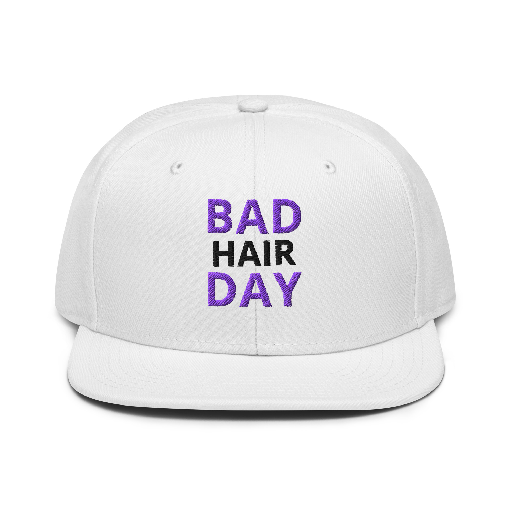 Make every bad hair day look effortlessly cool with this stylish snapback. Designed with comfort and attitude in mind, this cap is structured, high-profile, and finished with bold embroidered lettering. The flat visor and subtle grey under visor add a modern touch, while the adjustable snap closure ensures the perfect fit. Whether you’re heading out casually or making a streetwear statement, this cap has you covered.